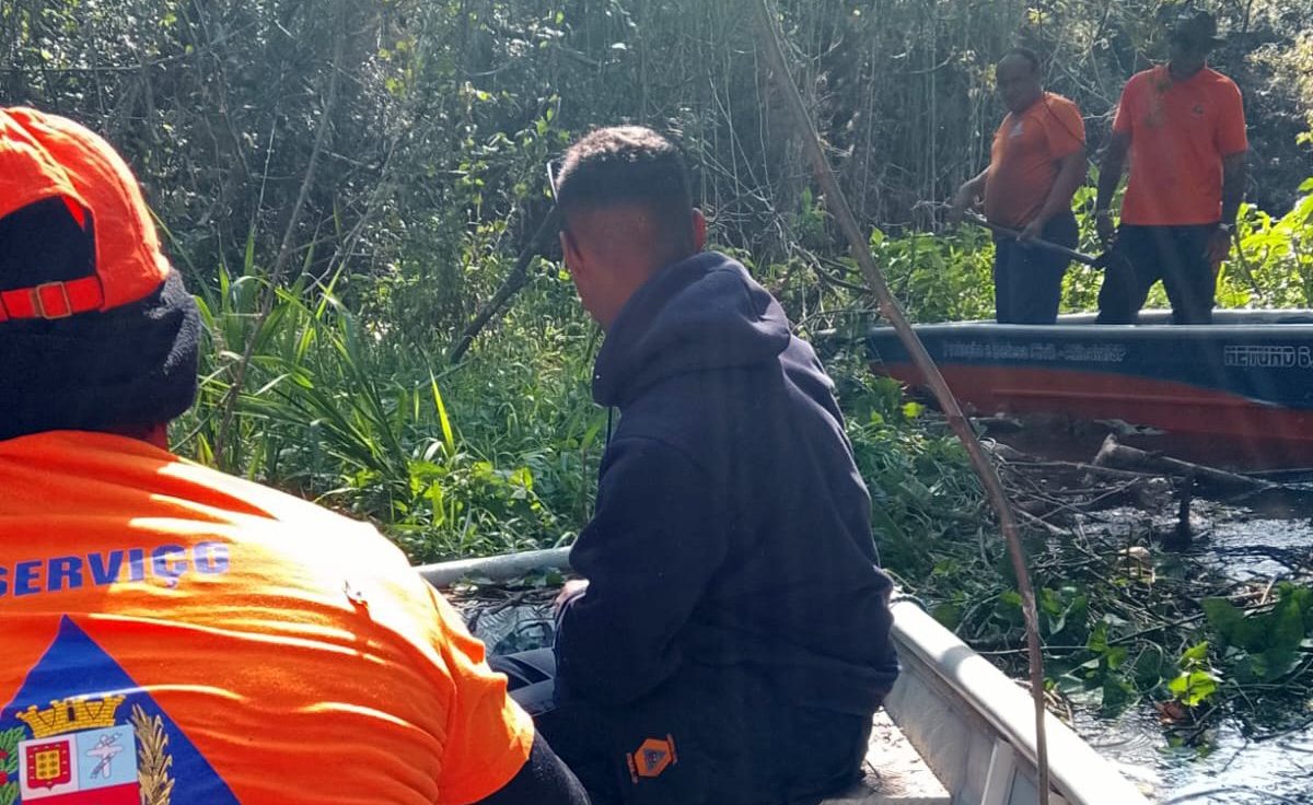 As equipes percorrem o rio em barcos, identificando locais que precisam de limpeza, com retirada de vegetação acumulada nas margens e recolhimento de resíduos descartados de forma irregular, como garrafas PET e outros materiais inservíveis.