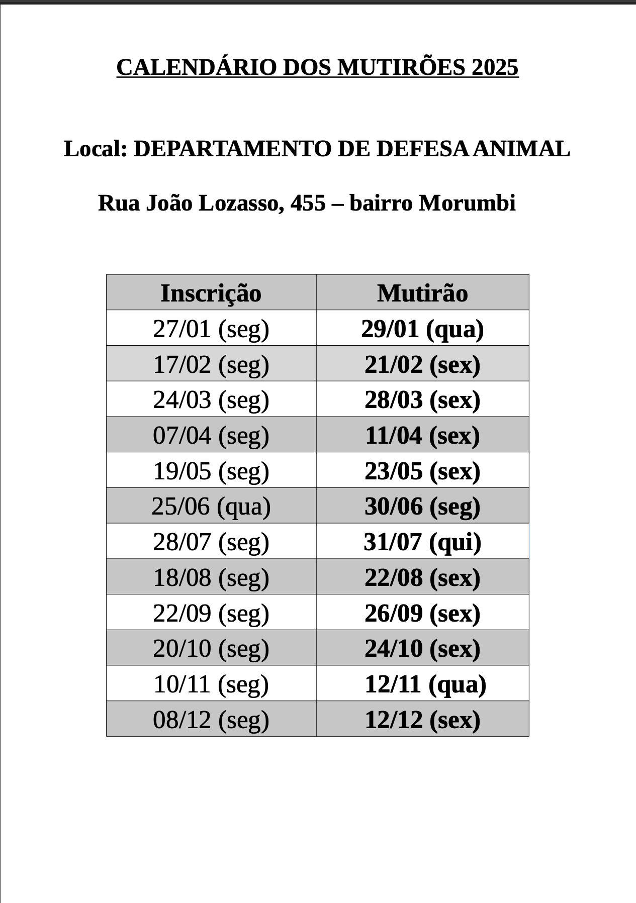 Serviços do Departamento de Defesa Animal da Prefeitura da Estância de Atibaia